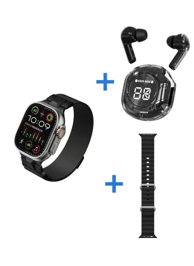 ساعة ذكية وسماعة لاسلكية – شاشة كبيرة، مكالمات بلوتوث، وتتبع اللياقة والصحة