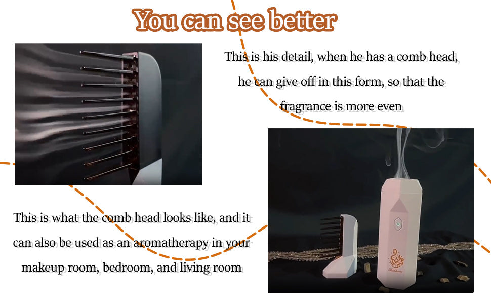 قم بتحسين أجواء منزلك باستخدام مبخرة البخور الإلكترونية Smart Hair Comb - وهي طريقة حديثة ومتعددة الاستخدامات وفاخرة للاستمتاع بعطورك المفضلة. 🌟🌿